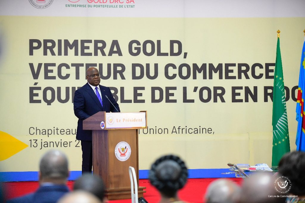 Le partenariat entre l’État congolais et les Emirats Arabes Unis produit déjà ses premiers effets dans le secteur minier. Ce vendredi 13 janvier a eu lieu au chapiteau de la cité de l’Union Africaine, à Kinshasa Ngaliema, et ce, en présence du Président Félix TSHISEKEDI la première expédition d’or équitable, par la République Démocratique du Congo, vers les Emirats Arabes Unis par le biais de sa nouvelle société de droit congolais; Primera Gold RDC s.a.